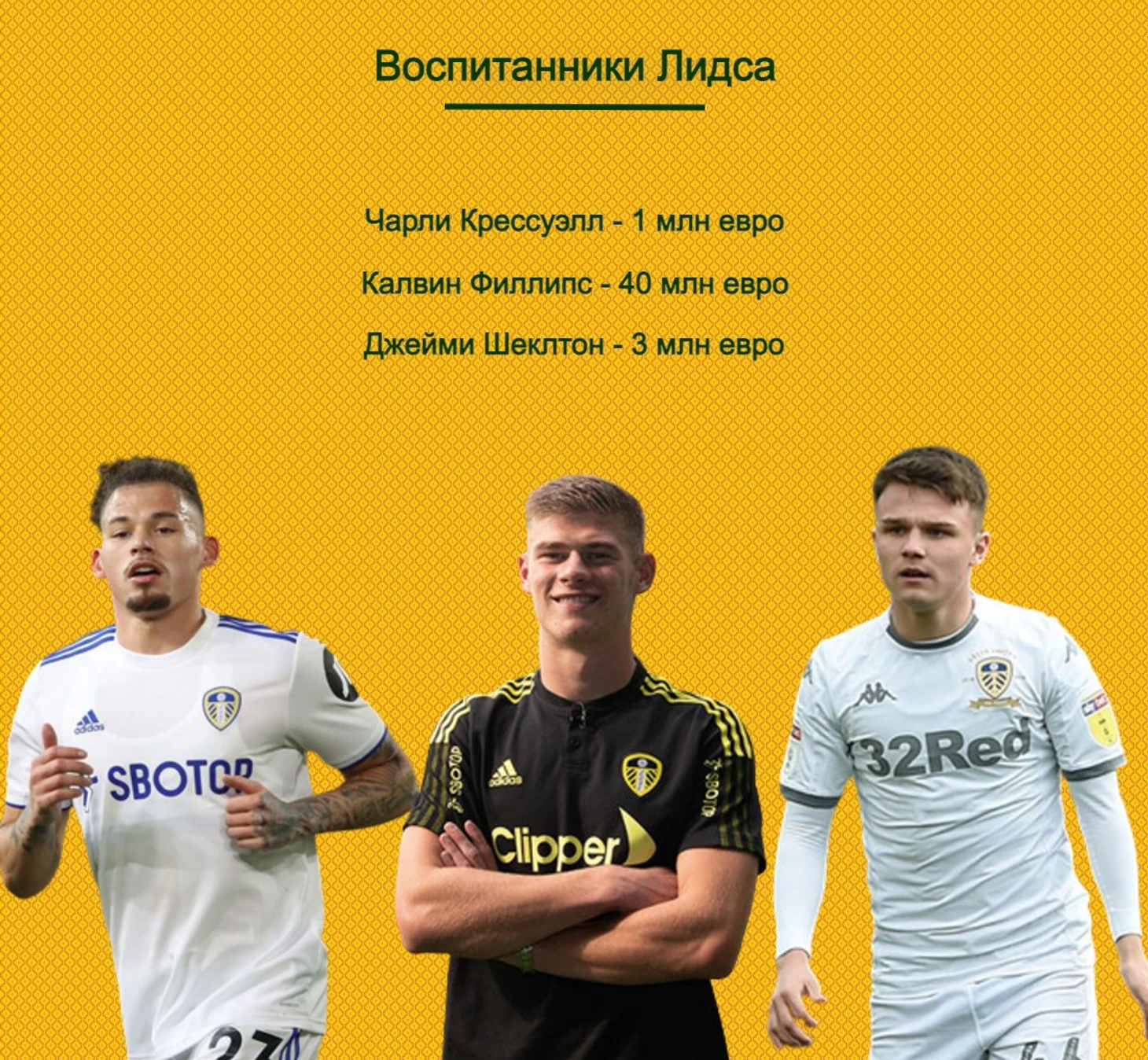Командами, где создаются и находятся таланты, но клубы не входят в большую шестерку являются Лестер, Лидс и Эвертон. В Эвертоне – Энтони Гордон, талант которого, непременно раскроет Фрэнк Лэмпард. Лестер - молодой Люк Томас. И Лидс с Калвином Филлипсом - игроком, входящим в сборную Англии.