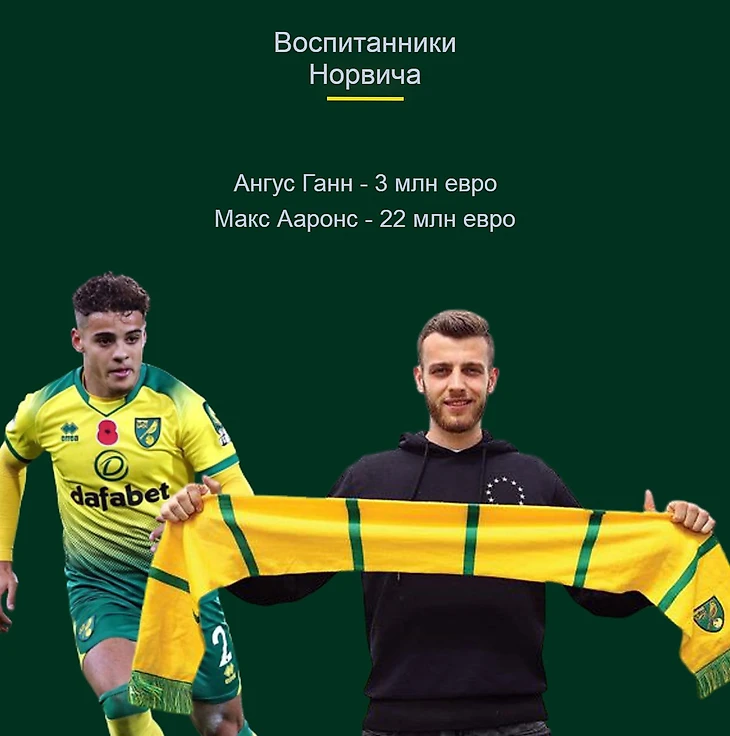 Помимо 26-летнего вратаря, воспитанником канареек является и Макс Ааронс. По слухам молодым защитником уже интересуются Юнайтед и Барселона. С учетом того, что Норвич находится на последнем месте турнирной таблицы, футболист может пойти на повышение класса уже этим летом.