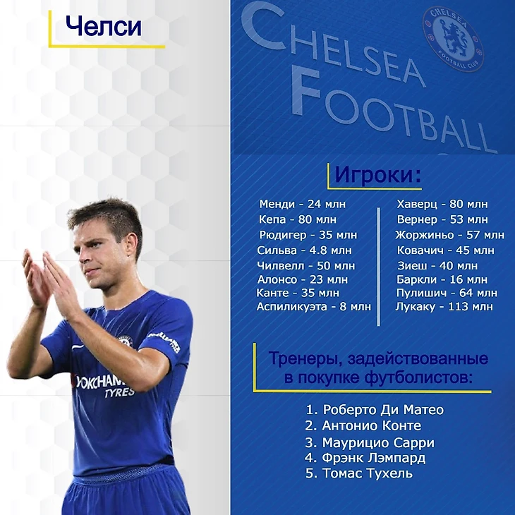Состав “Челси” сформирован шестью разными тренерами: Роберто Ди Матео, Жозе Моуриньо, Антонио Конте, Маурицио Сарри, Фрэнк Лэмпард и Томас Тухель. Каждый из этого списка кардинально отличается от других. У клуба полностью отсутствует игровая самоидентификация.