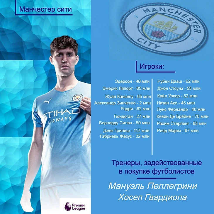 Можно увидеть, что кроме Фернандиньо и Рахима Стерлинга, каждый футболист был куплен Пепом Гвардиолой или, как в случае с Кевином Де Брюйне для Пепа Гвардиолы.