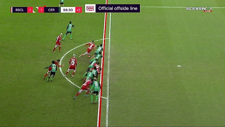Но самое интересное здесь только началось. На следующий день «Стандард» выступил с большим заявлением: «Чтобы принять решение об отмене этого гола, ранее засчитанного главным арбитром и его ассистентом, бригаде VAR нужно было с хирургической точностью прочертить двойную 3D-линию ровно в тот момент, когда игрок «Стандарда», выполнявший подачу, коснулся мяча. Тем не менее, очевидно, что линия была прочерчена неверно. На изображении четко видно, что точка отсчёта, взятая для проведения линии, не является самой крайней точкой тела защитника «Серкля Брюгге» – его бедро явно выходит за пунктирную линию. Эта явная ошибка полностью искажает картину и делает любой якобы бесспорный вывод ложным.