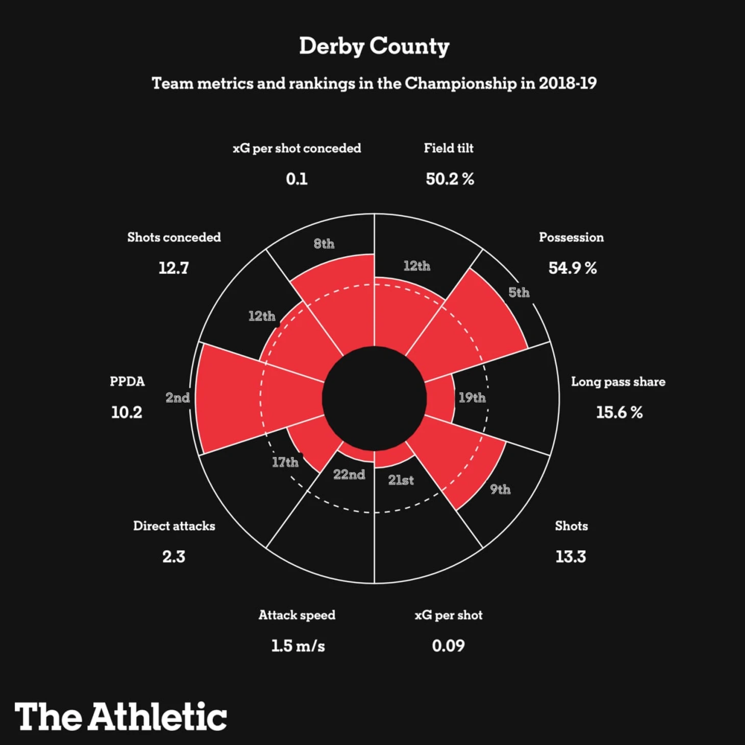 Обе команды были активны в прессинге: Дерби - 2ые и Челси - 5ые по количеству передач за оборонительные действия (прим. - PPDA - показатель, Который показывает сколько передач команда позволяет сделать противнику, перед отбором мяча).