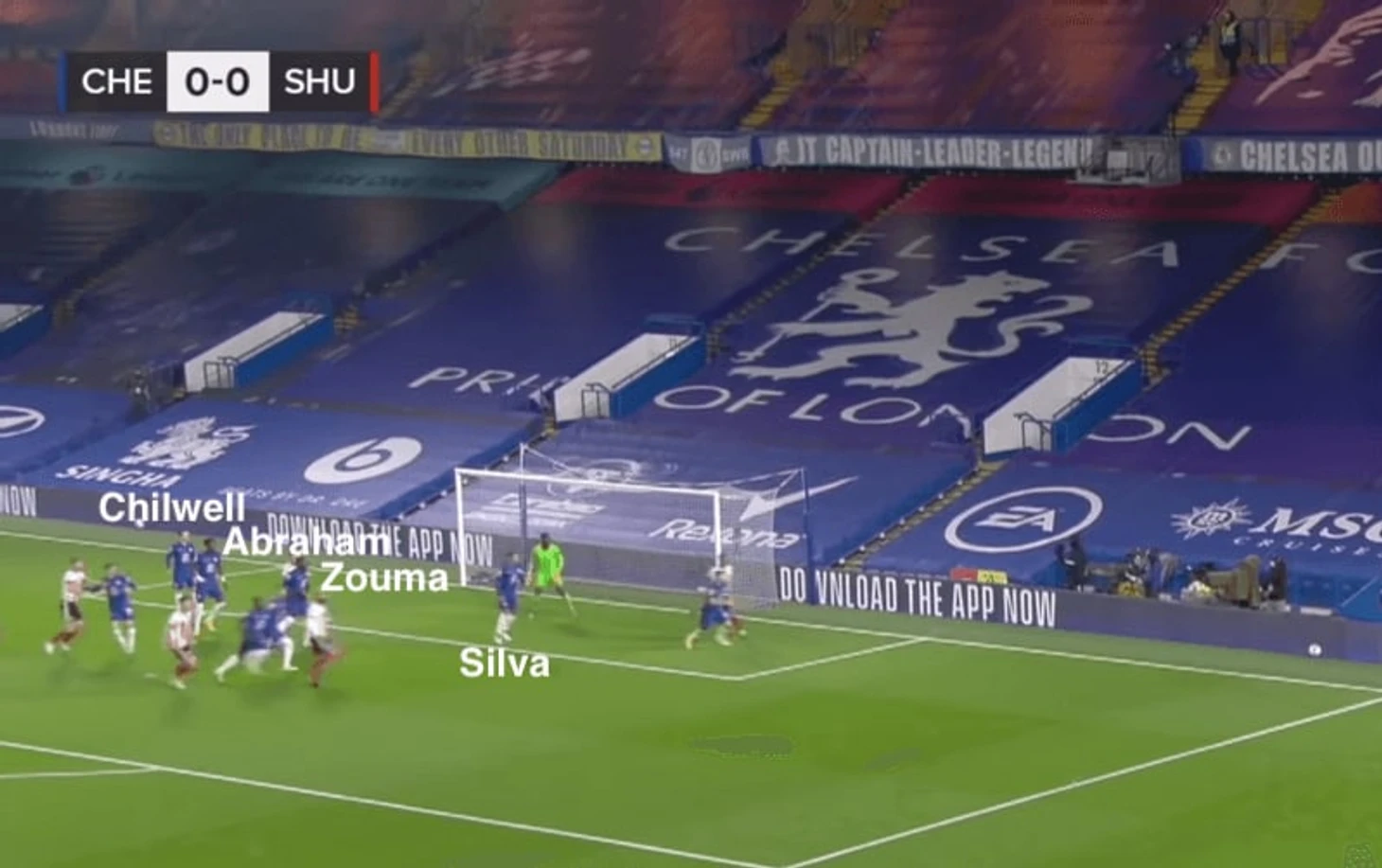Последней линией обороны были четыре защитника (прим. - в том числе Зума и Тьяго Силва),расположенные по своим зонам вдоль штрафной и 3-4 одноклубника впереди, активно сражающиеся с соперниками. У стоящего за защитниками Эдуарду Менди стояла задача проявлять инициативу и выходить из ворот для перехвата навесов в штрафную, в отличии от неустойчивого Кепы Аррисабаги, который очень часто оставался прикованным к своим воротам.