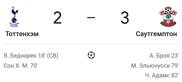 В середине второго тайма пошла жара. Сначала на 70-й минуте Сон Хын Мин изумительным ударом в нижний правый угол ворот,после передачи Лукаса Моуры, вывел Тоттенхем вперёд. На 79-й минуте Эльюнусси замкнул отличный навес в штрафную и вновь счёт стал равным, но уже через 3 минуты Че Адамс замкнул подачу в штрафную и вывел Саутгемптон вперёд. Тоттенхем мог спастись благодаря голу Стивена Бергвейна на 90+3 минуте, но вмешался VAR. Игра так и завершилась со счётом 2-3 в пользу Саутгемптона.