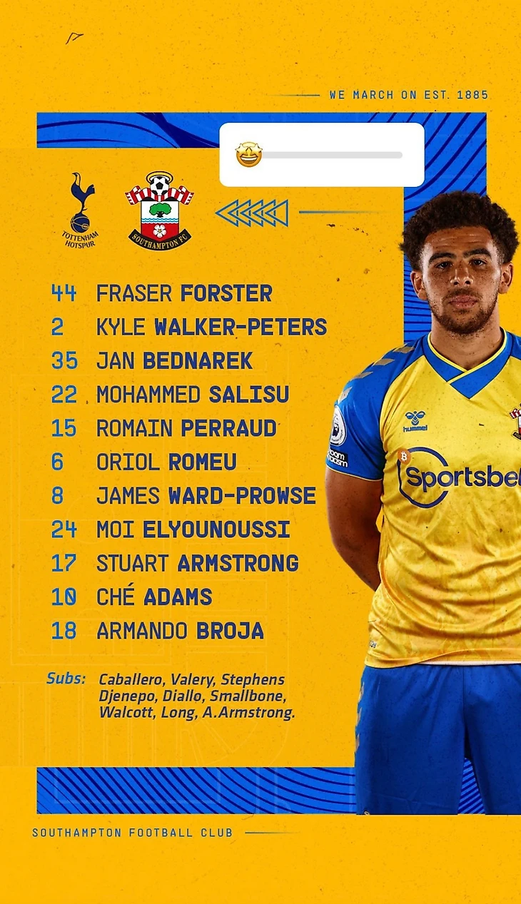 В 21 матче Тоттенхэма в АПЛ, «шпоры» принимали Саутгемптон. Вот их стартовые составы:
