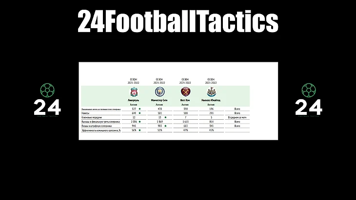 Выигрыш подборов «Сити» и «Ливерпуля» позволяет им снова создавать опасные моменты. И видно, как соотносится число выигранных подборов с итоговыми результатами матчей. Количество овладеваний мячом на половине поля соперника увеличивает количество навесов и входов в штрафную соперника. Такие моменты помогают постоянно владеть преимуществом и создавать большее давление у ворот соперника.