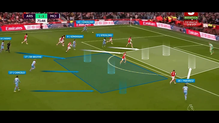 У команды Гвардиолы также прослеживается эта организованность при передачах с флангов.
