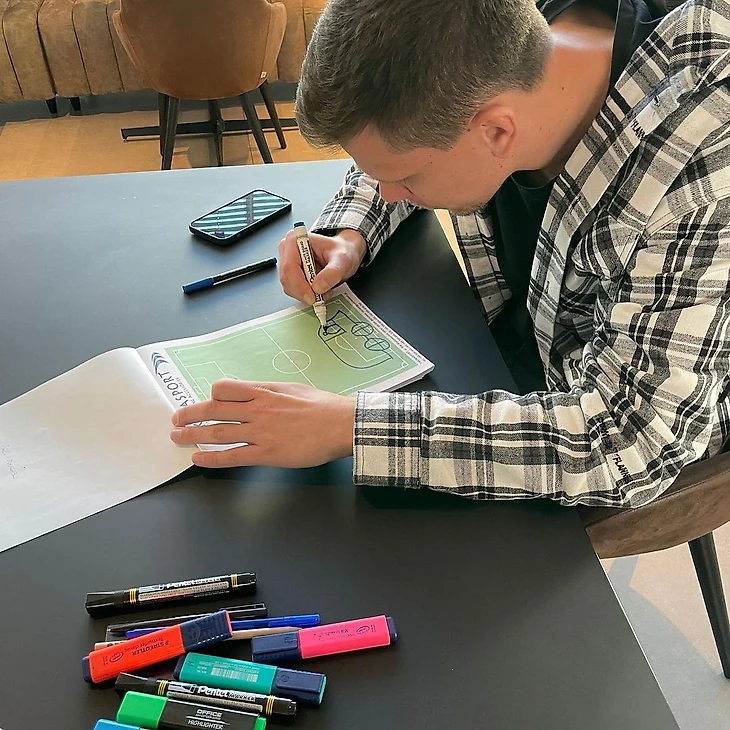Вратарь «Ювентуса» на планшете для тактических зарисовок изобразил стратегию команды при Михневиче.