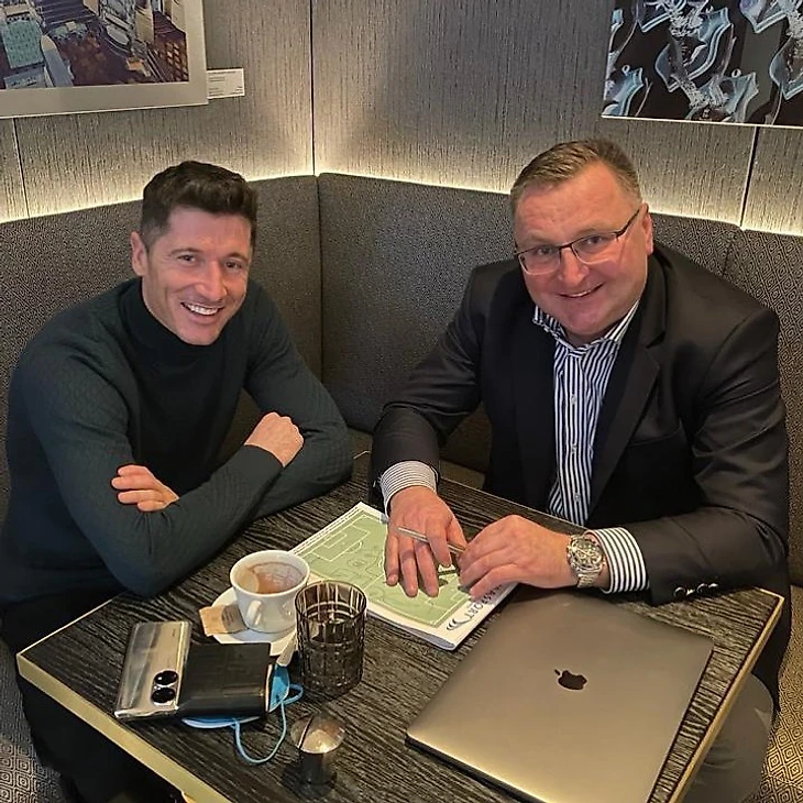После этого Михневич как раз и поехал в тур по футболистам. И Левандовски был первым в списке. Любопытно, тактический планшет тоже здесь. И там, судя по всему, совсем не автобус.