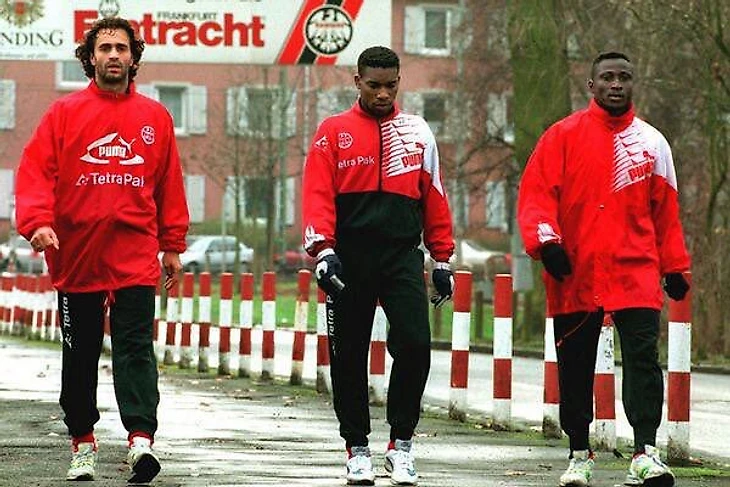В сезоне 94/95 ситуацию во Франкфурте был призван исправить знаменитый Юпп Хайнкес. Назначение выглядело многообещающим и вселяло надежды в будущее команды… но не тут-то было. Немец совершенно не сошелся характером с лидерами клуба из-за чего атмосфера и отношения в раздевалке существенно усугубились, особенно плохой была связь с африканским дуэтом Окоча-Йебоа, Хайнкесу ужасно не нравилось озорство и беспечность мятежных африканских душ, коуча даже не убеждал их весомый вклад в успехи команды. Разобщение внутри коллектива привели к серьезному ухудшению игры и результатов команды, также серьезно сказались уход лучшего бомбардира Йебоа и лидера середины поля Маурицио Гаудино, в конечном итоге «орлы» скатились в середину таблицы порой находясь на грани с зоной вылета и лишь в последних турах сумели попасть в первую десятку, заняв итоговое девятое место.