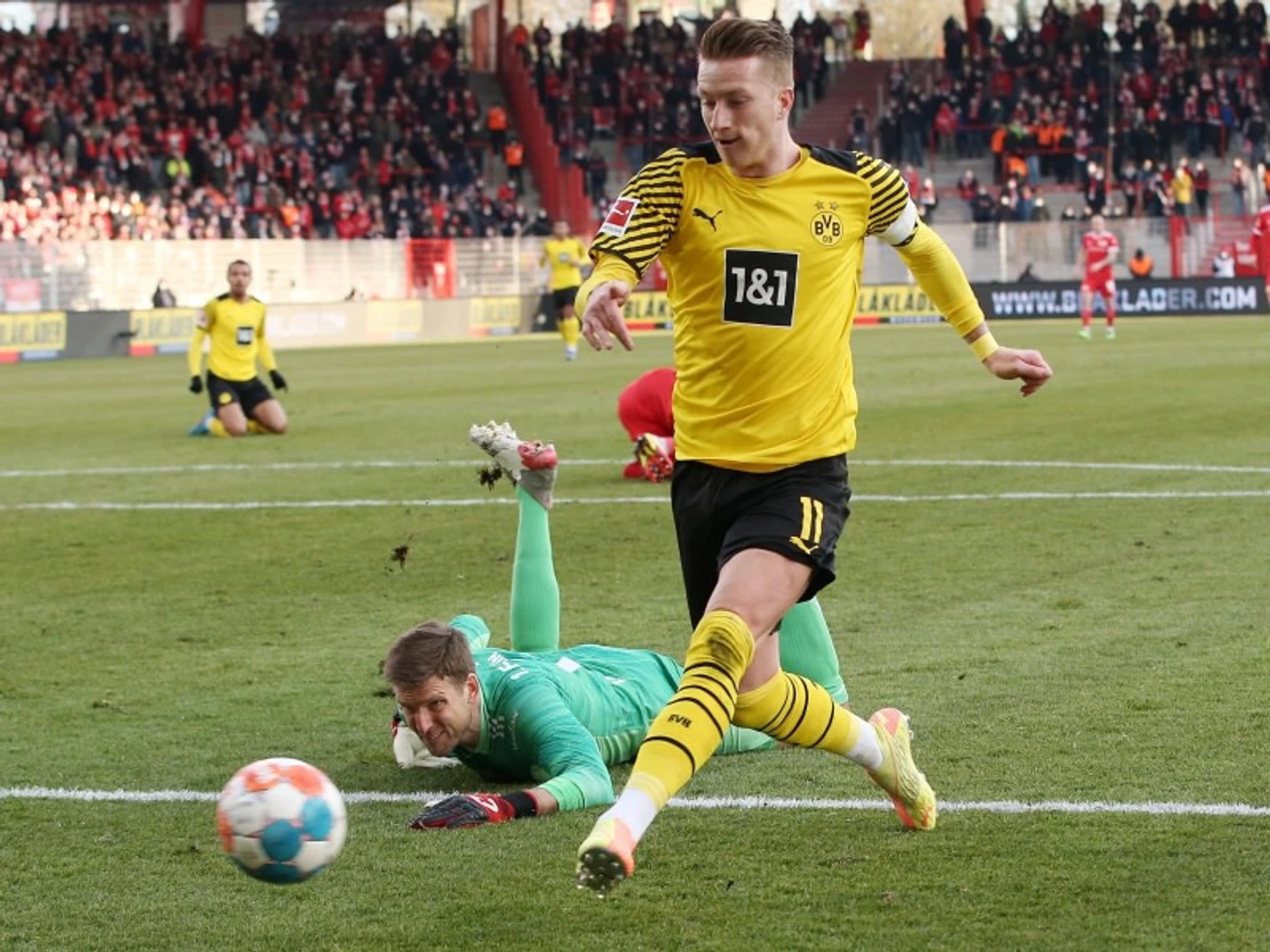 "Унион"- "Боруссия" Дортмунд 0:3.Берлинцы принимали главного конкурента "Баварии" за чемпионство.Урс Фишер после поражения от "Аугсбурга" заменил сразу 5 человек.Марко Розе после домашнего поражения от "Байера" выпустил Хуммельса и Витселя вместо Менье с Азаром.Матч судил Маттиас Йолленбек.