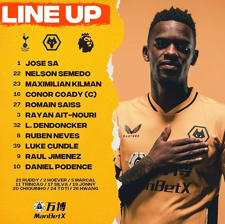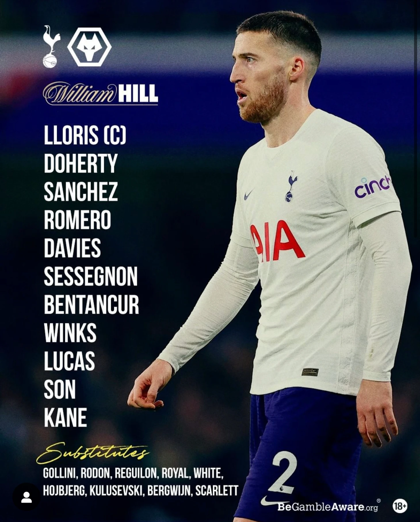 В 22 матче Тоттенхэма в АПЛ, «шпоры» уступили Вулверхэмптону. Вот стартовые составы этих команд:
