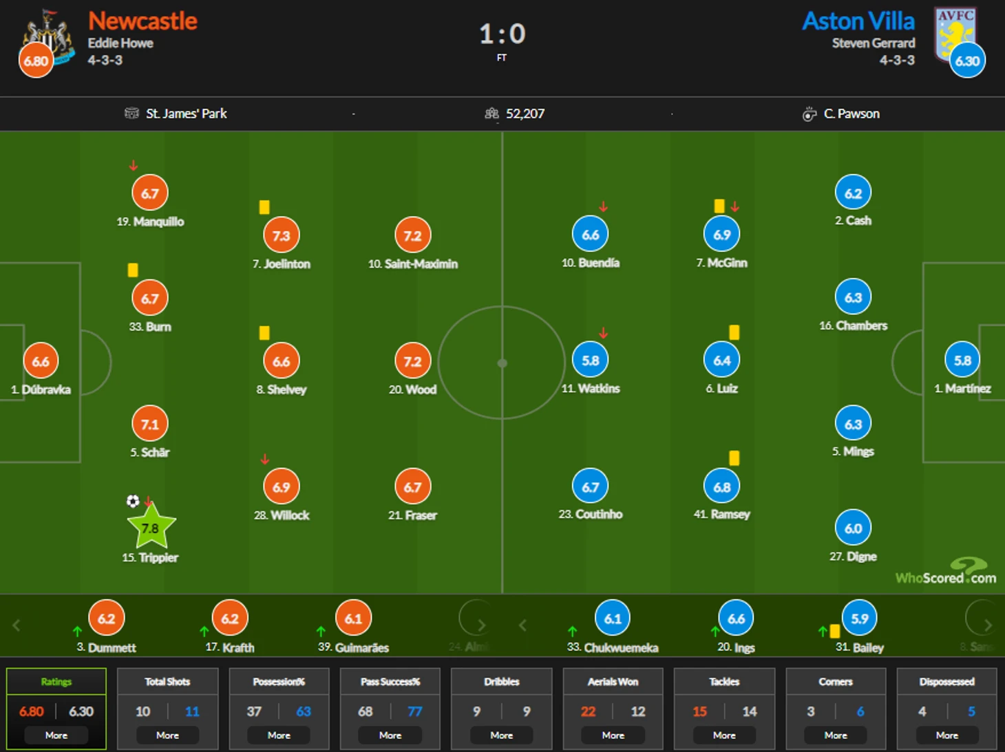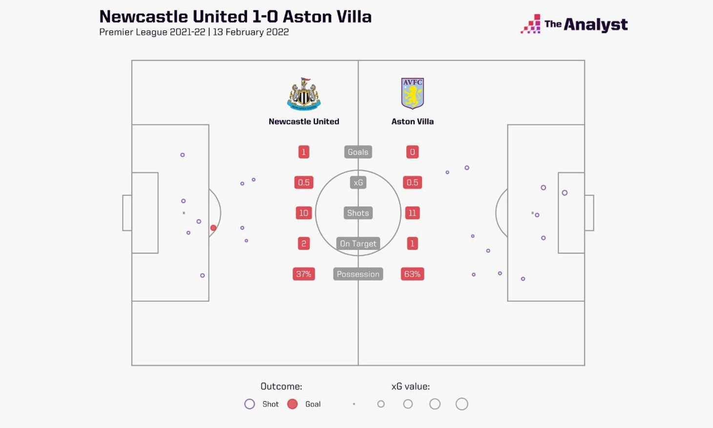 Матч сильно напомнил игру Англии и Шотландии на евро, когда первые экономили силы, согласившись на ничью против явного аутсайдера, а шотландцы вовсю атаковали. Ньюкасл смог чудесным образом забить в первом тайме, поэтому соглашаться на ничью не пришлось, а Вилла атаковала-атаковала, да не выатаковала. Много нескладных действий, мало остроты и пугающая однотипность.