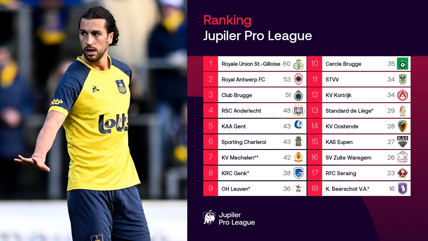 Турнирная таблица чемпионата Бельгии по итогам 27-го тура