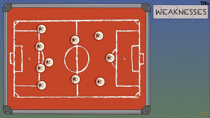 В то время как 4-3-3 предлагает хорошую отправную точку для доминирования над мячом и быстрого восстановления владения за счет использования контрпрессинга - некоторые из сильных сторон этой структуры также могут быть некоторыми из предполагаемых недостатков.
