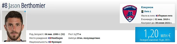 Жасон Бертомье - основной, ключевой полузащитник "Клермона", старожил и один из творцов выхода клуба в Лигу 1, лидер по количеству ассистов среди игроков команды, по национальности - француз.