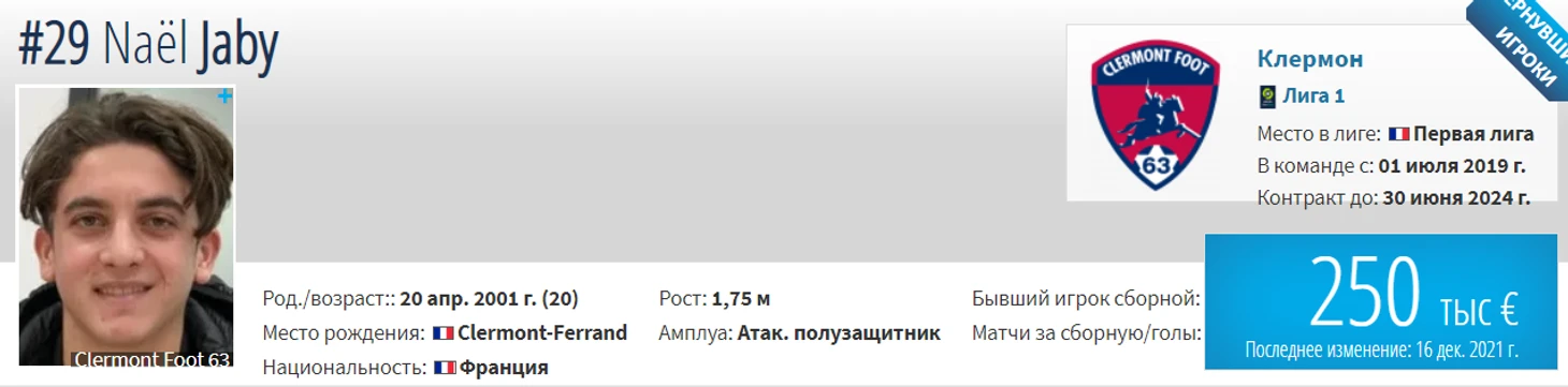 Наэль Жаби - молодой игрок, воспитанник и уроженец Клермон-Феррана, резервист, тренирующийся вместе с основной командой, но редко входящий даже в заявку на матчи "Клермона", по происхождению - француз.