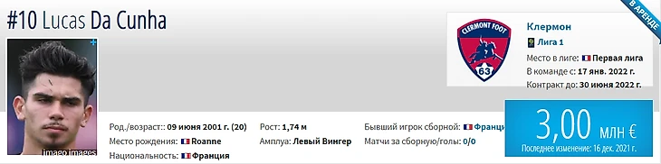 Лукас Да Кунья - приобретение недавно закрывшегося зимнего трансферного окна, молодой крайний нападающий, имевший солидный опыт выступлений в Лиге 1, по происхождению - больше португалец, чем француз.