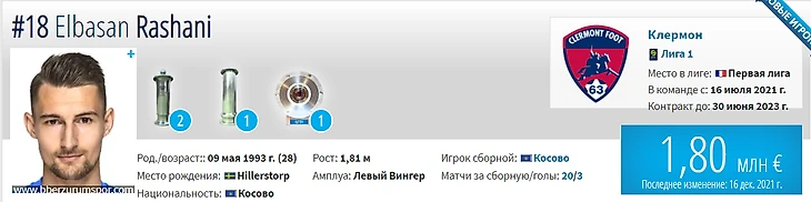Эльбасан Рашани - один из самых богатых на клубную карьеру игроков "Клермона", габаритный вингер, с хорошим пасом и неплохим ударом головой, одно из летних приобретений клуба, по национальности - косовар.