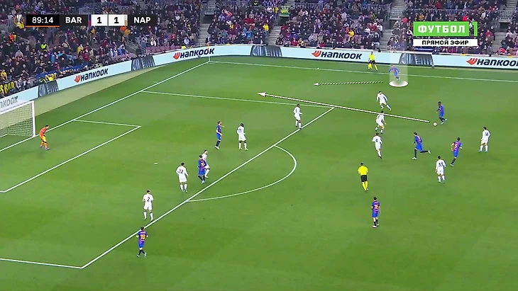 Заключительные 20 минут матча – отрезок пикового преимущества «Барсы» по владению. Сформировались пугающие 82%. Одной из причин был уход с поля Замбо-Ангисса – он хотя бы немного удерживал владение и давал «Наполи» передохнуть.