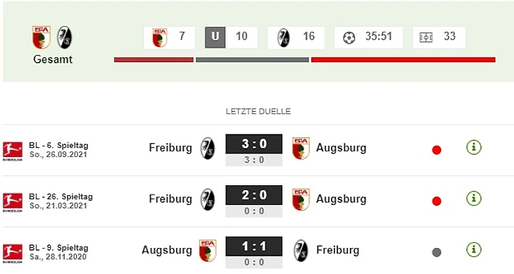 «Фрайбург» не одержал побед в последних трех выездных матчах, но не потерпел поражения в последних предыдущих матчах Бундеслиги в Аугсбурге (3 победы, 3 ничьи).