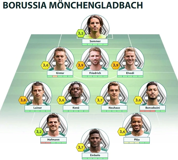 Ройс забил 41 гол и отдал 28 результативных передач в 109 матчах за «Гладбах». Мо Дауд, Торган Азар и Нико Шульц также являются бывшими гладбахцами. Между тем Хофманн и Гинтер — бывшие игроки «Дортмунда».