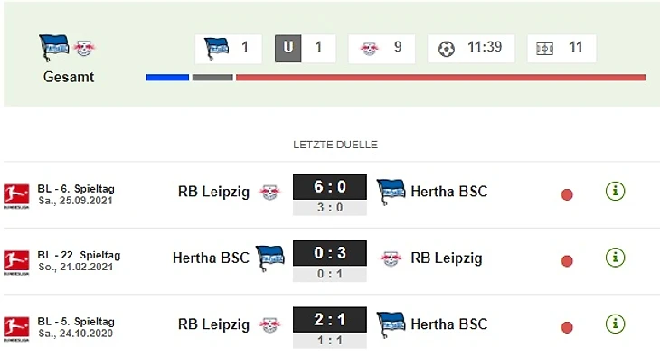 «Лейпциг» одержал больше побед (девять) и забил больше голов (39) в ворота «Герты», чем любой другой клуб Бундеслиги, с которым они сталкивались.