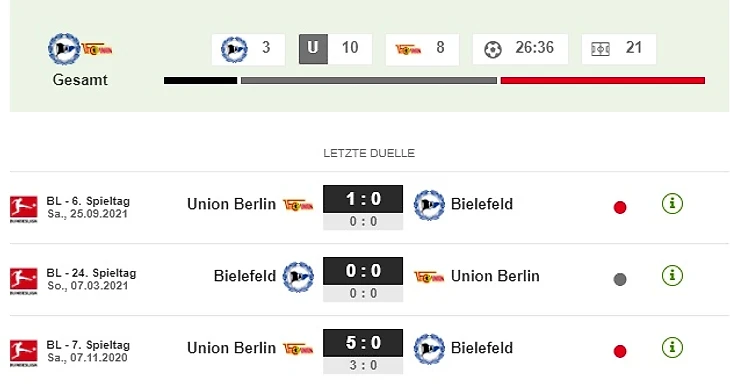 «Унион» не одержал побед в шести матчах в Билефельде, хотя пять из них завершились вничью, включая последние четыре.