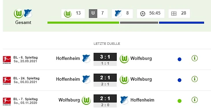 Волки не терпели поражений в девяти домашних матчах Бундеслиги против «Хоффенхайма» (5 побед, 4 ничьих).