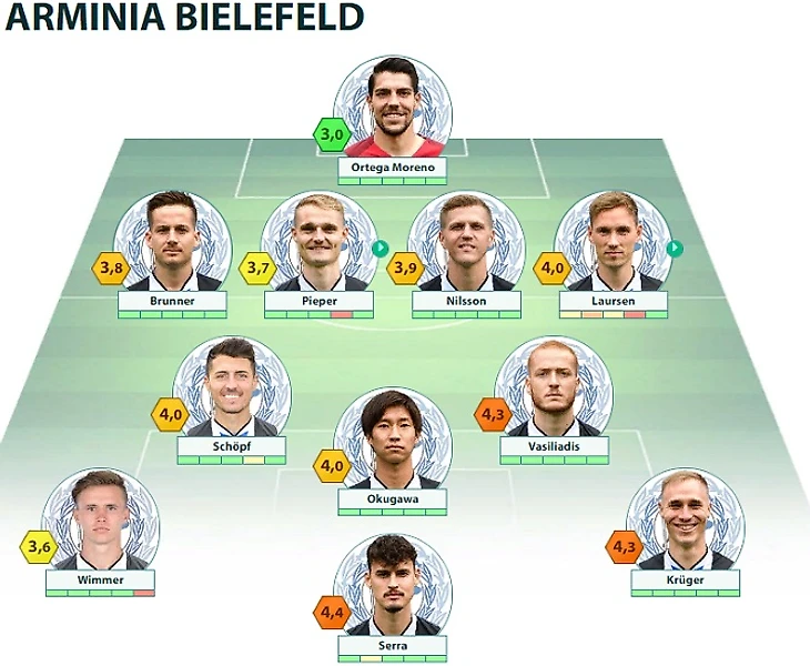 Масая Окугава — лучший бомбардир Билефельда, забивший семь мячей, в то время как Виммер лидирует по количеству результативных передач с пятью.