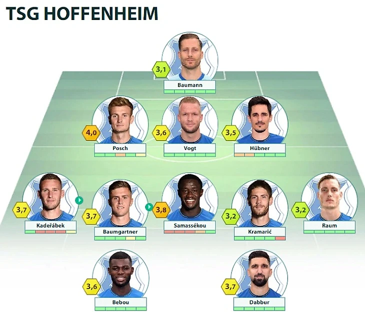 TSG может похвастаться 17 разными игроками, забившими гол в чемпионате 2021/22 года, список которых возглавляет Ила Бебу, забивший семь мячей.