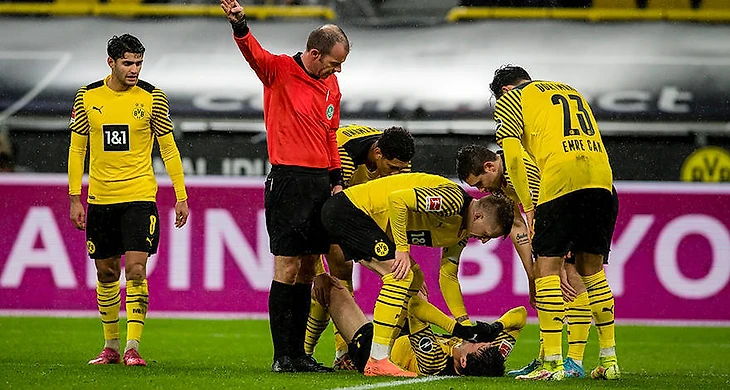 Но буквально через несколько мгновений на поле выбежал медицинский персонал дортмундцев для того, чтобы оказать медицинскую помощь получившему травму Рейне. Травма американца оказалась серьезной, и он в слезах покинул поле (вместо него вышел Брандт).