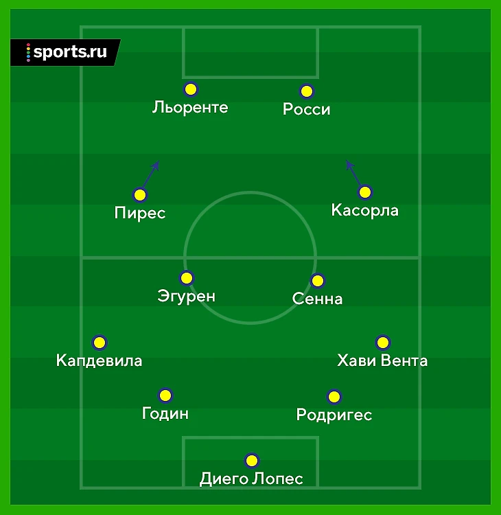 Движение Росси создает разрыв в защите «Реала» – благодаря этому сразу три игрока «Вильярреала» оказались без опеки в штрафной. Один из них – Пирес. Француз и завершит эпизод голом:
