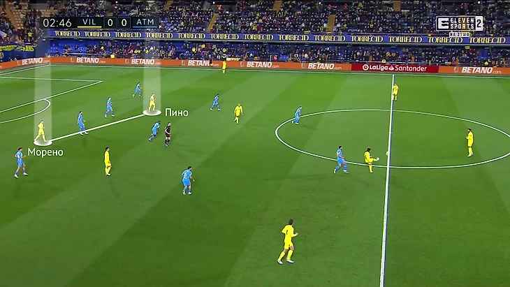 Дотошность отлично прослеживается по тому, как Унаи использует крайних полузащитников – ключевых игроков для стиля «Вильярреала». В игре с «Атлетико» пара Альберто Морено – Йереми Пино действовала максимально свободно и эпизодически даже оказывалась парой форвардов: