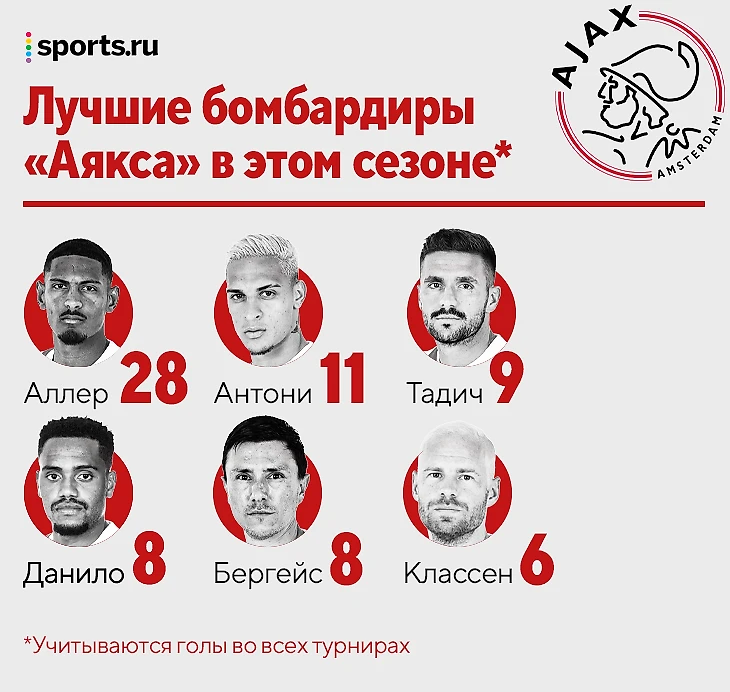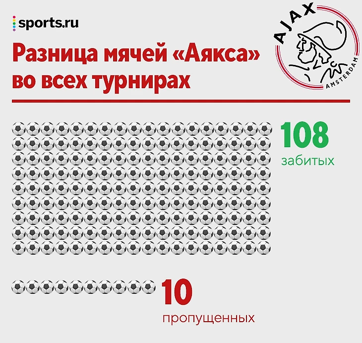Вот так выглядит разница мячей «Аякса» во всех турнирах этого сезона. Внушает, не так ли?