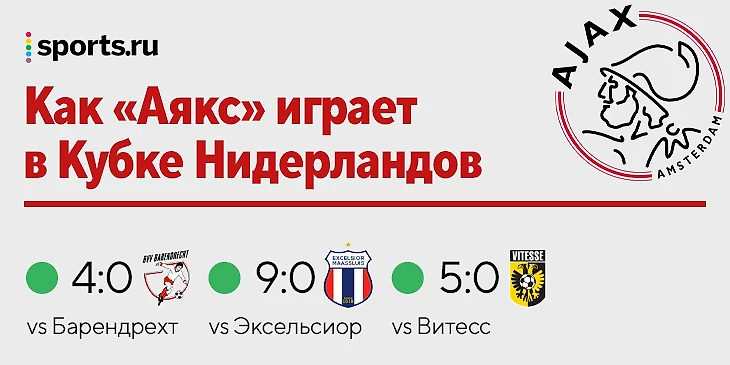 К плей-офф ЛЧ («Аякс» играет с «Бенфикой» в среду) клуб подходит с серией из десяти побед подряд. Пропущенный – всего один.