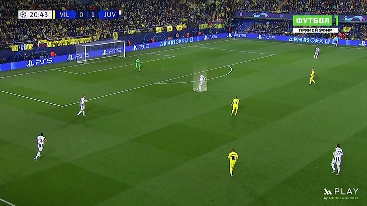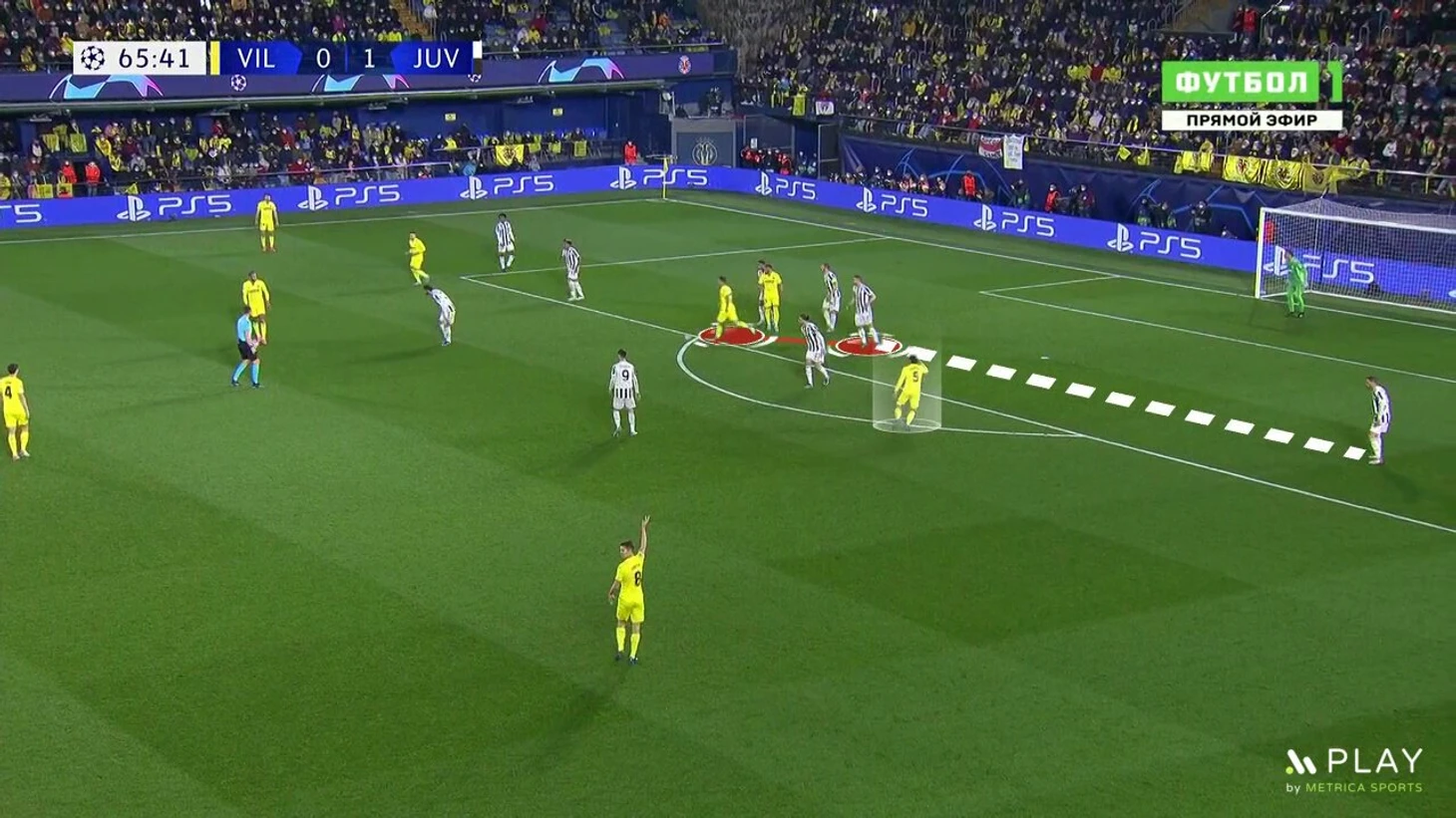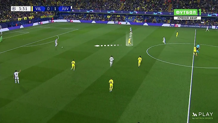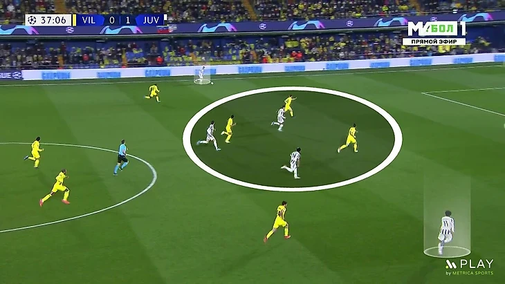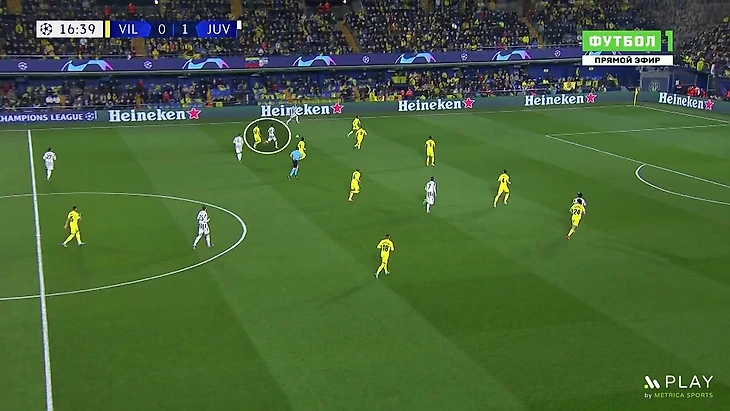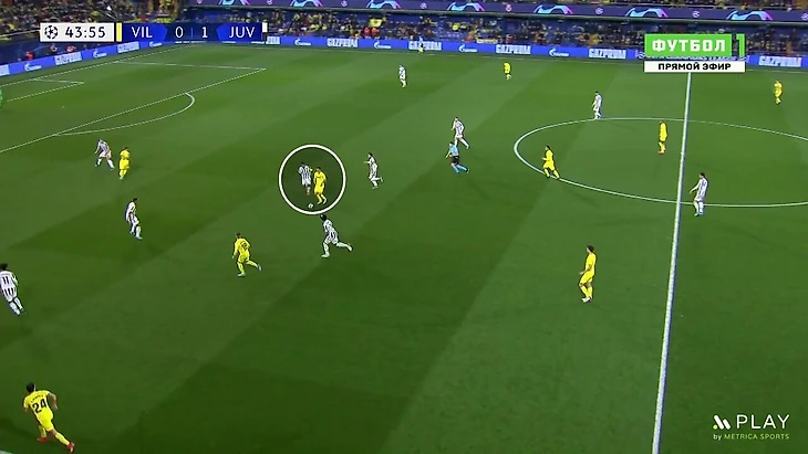 По ходу тайма «Вильярреал» стал играть агрессивнее. К двум нападающим в прессинг выдвигался еще и вингер, а по цепочке выше поднимался крайний защитник. Но, когда «Вильярреал» шел в давление так смело, случались провалы сзади, за которые «Юве» мог наказывать через дальние передачи: