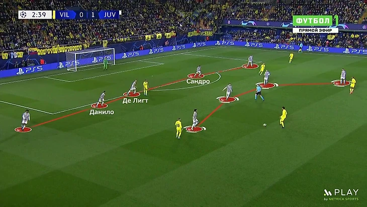 В плане поддержания схемы не было вообще никакого смысла смещаться туда. Это только открыло зону для рывка. Но в плане установки голландец действовал верно. Просто в этом эпизоде «Вильярреал» атаковал другим приемом. Адаптируясь под классические маневры соперника, «Ювентус» стал уязвимым в других сценариях.