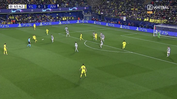 Вильярреал должен был перестраиваться из-за быстрейшего пропущенного мяча. Юве без мяча при обороне использовал схему с 5-ю защитниками. Сандро и Данило занимали места в тройке рядом с Матеусом Де Лигтом. Высокое расположение Альбиоля и Пау Торреса просто напросто манила играть забросами на нападающих "Юве". Быстрый гол - серьезный удар пл психике и планам на игру для соперника. Команда, забивающая в первые 15 минут матча, имеют множество возможностей для маневра. Андердог или осторожный и прагматичный коллектив (с тренером Аллегри), может отойти назад, выставив автобус или рассчитывать на контратаки. Если же первым забивает абсолютный фаворит то дело может двигаться к разгрому, либо после первого тайма и уверенности в сделанной игре - фаворит начинает включать энергосберегающий режим. Вильярреал команда из опытных футболистов, после пропущенного должны были взять мяч под свой контроль. Удар в каркас ворот от Ло Чельсо, изящный удар пяткой Данжумы.