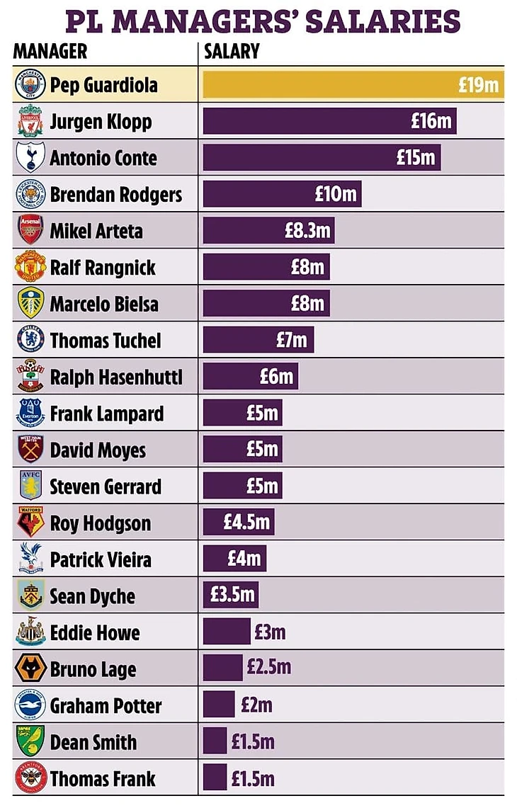 Появился рейтинг зарплат тренеров АПЛ. Кажется, его лучше не показывать Томасу Тухелю