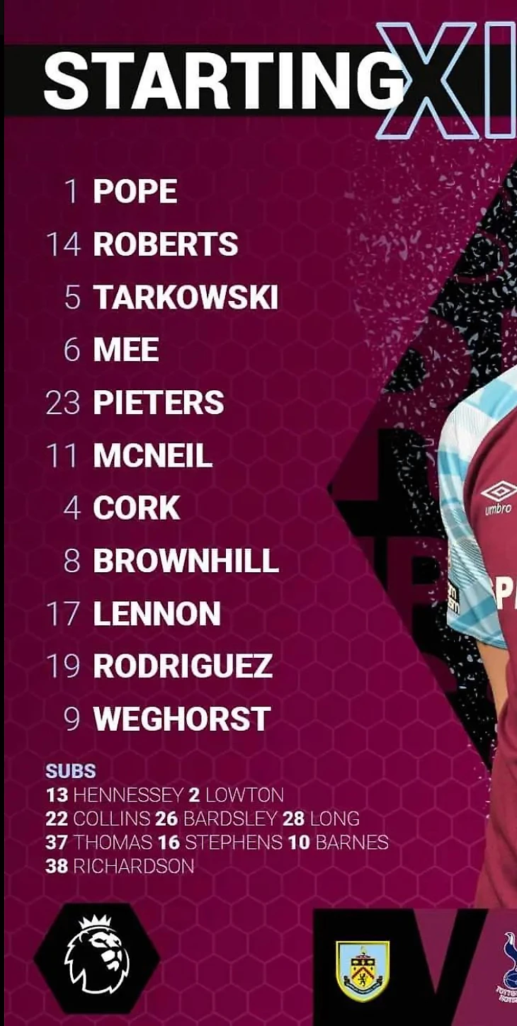 Вчера наконец состоялся перенесённый ещё в декабре из-за снегопада матч Бёрнли-Тоттенхэм. Вот стартовые составы этих команд: