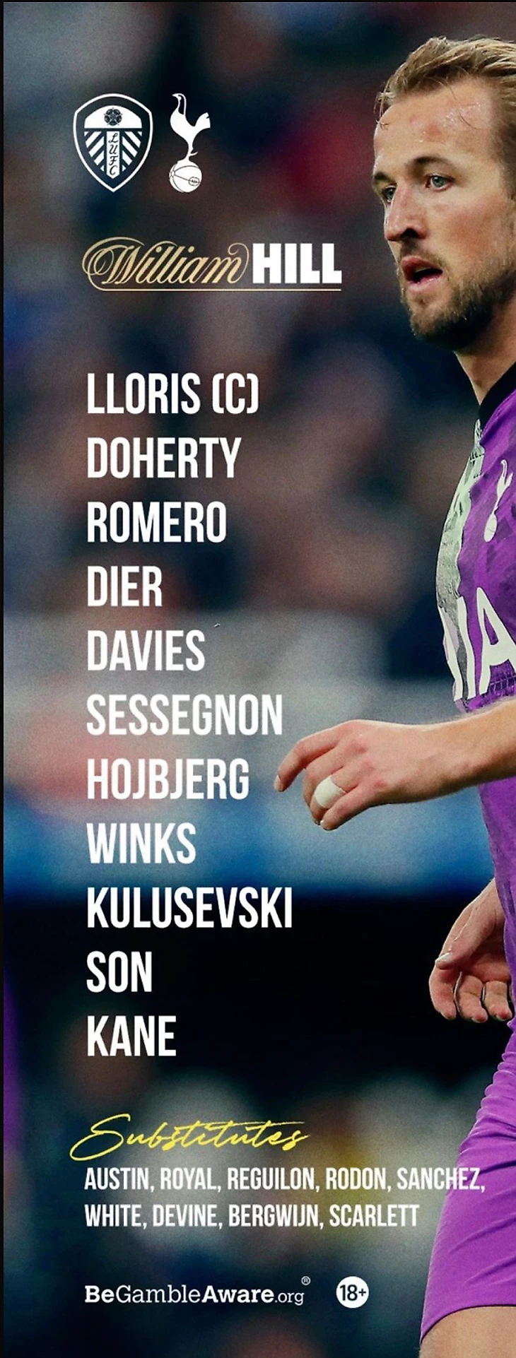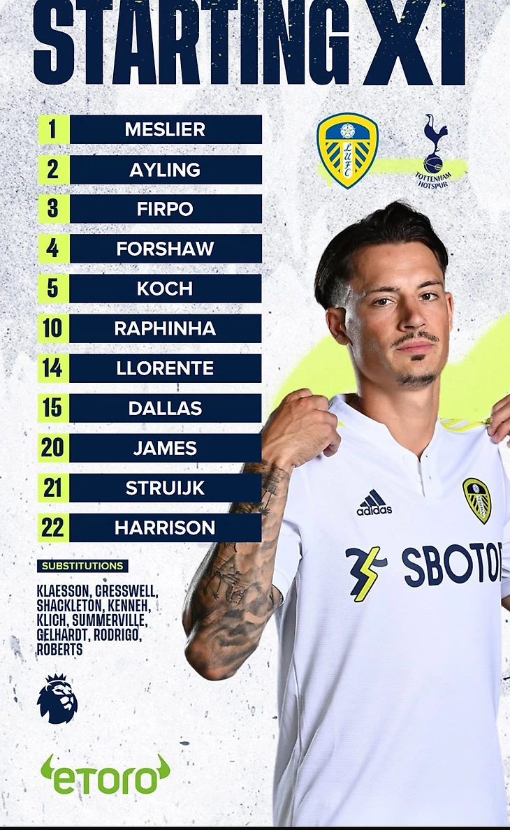 Вчера на «Элланд Роуд» состоялся матч между Тоттенхэмом и Лидсом. Стартовые составы были следующими: