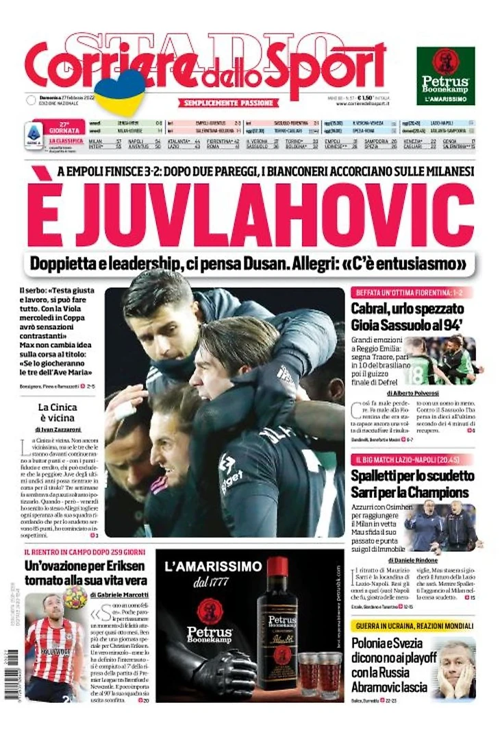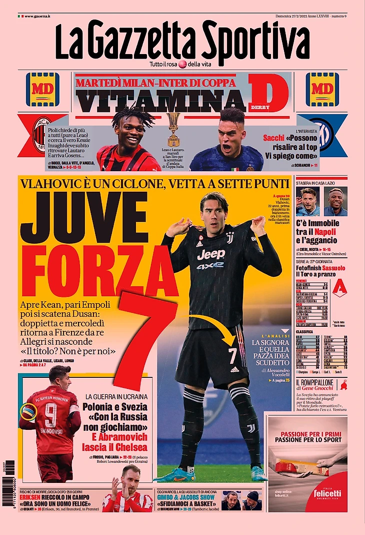 Это ЮВлахович. Заголовки Gazzetta, TuttoSport и Corriere за 27 февраля