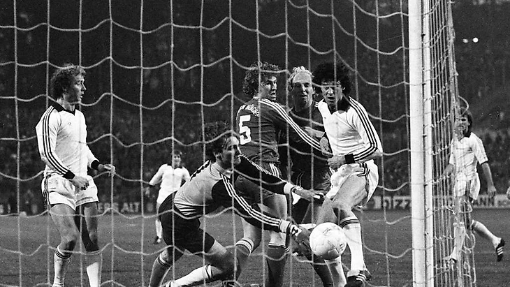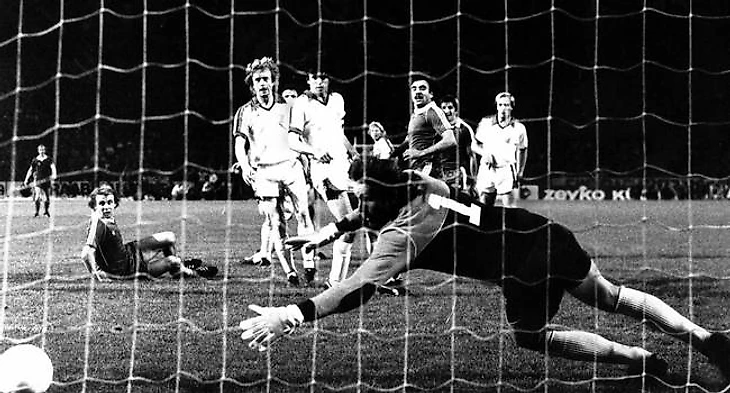7 ноября 1979, Милан, Интер-Боруссия. Защитник гостей Рингельс (№12) на 103-й минуте сравнивает счёт, 2-2...