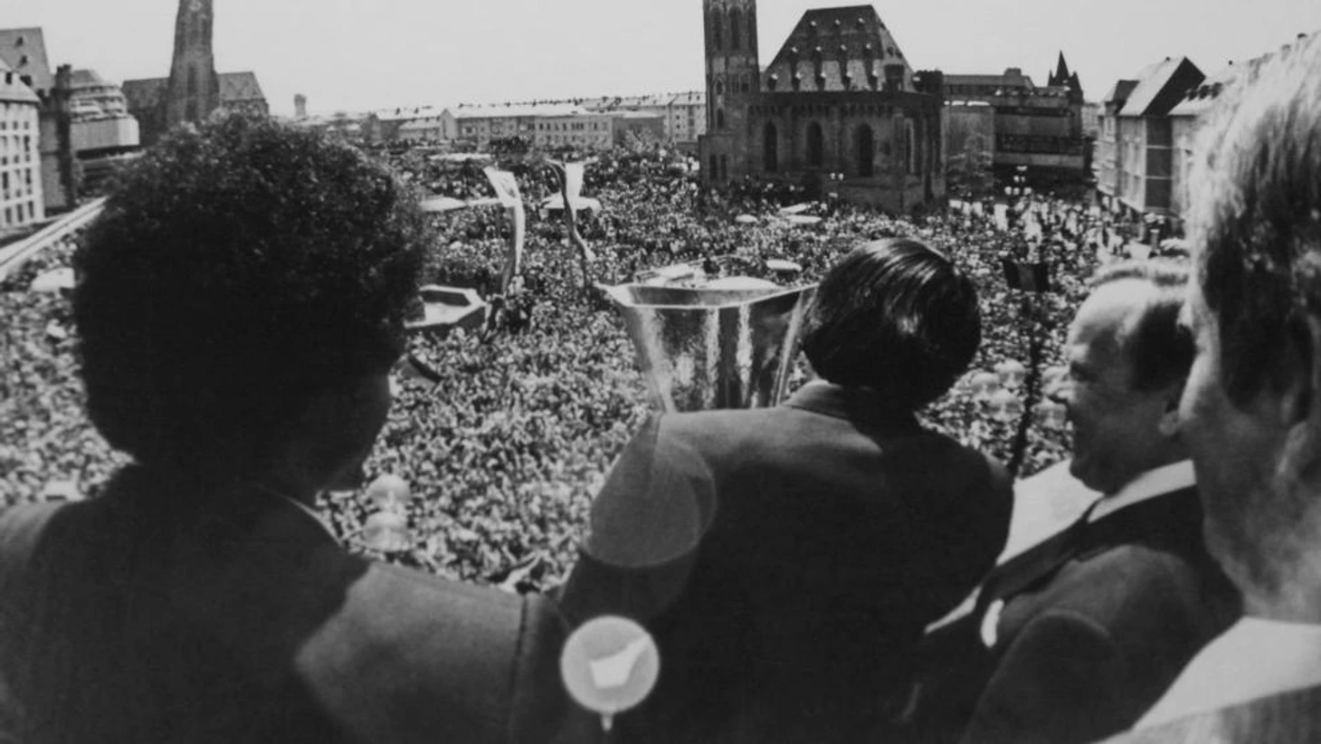Наконец, раздался финальный свисток и восторженный Вальдштадион приветствовал успех Айнтрахта. На церемонии вручения главного приза Грабовски был на переднем плане, держа Кубок вместе с Хёльценбайном, в то время как Хайнкес, его команда и их поклонники аплодировали достижению соперника...