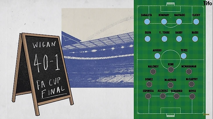 «Уиган Атлетик» - футбольный клуб, который, по-видимому, с большей вероятностью, будет специально играть так, чтобы не получить повышение в следующий дивизион, но тем не менее - в 2013 году эта команда потрясла футбольное сообщество обыграв Манчестер Сити (который в следующем году выиграет Премьер-лигу) и завоевав Кубок Англии.