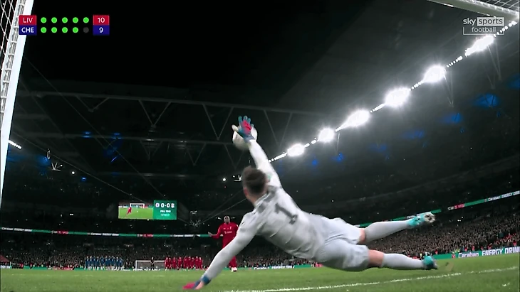 Большого празднования со стороны Келлехера не было. Он сохранял хладнокровие и вернулся в створ ворот, чтобы посмотреть, как Кепа пробивает свой удар выше перекладины.