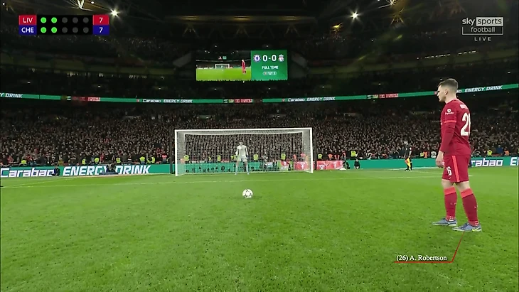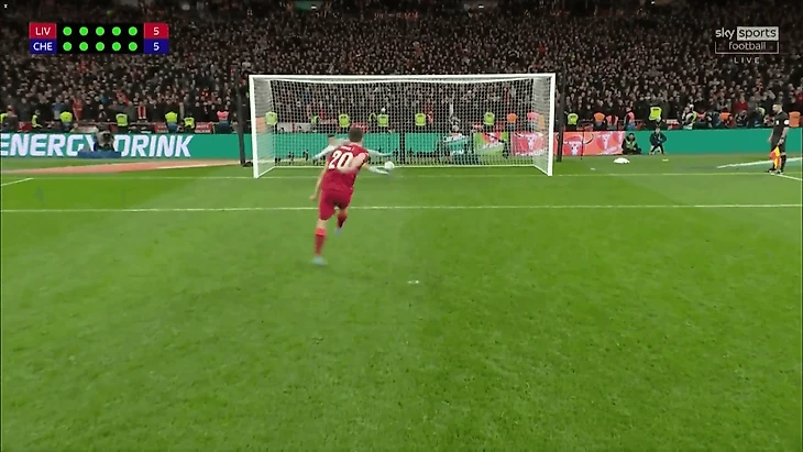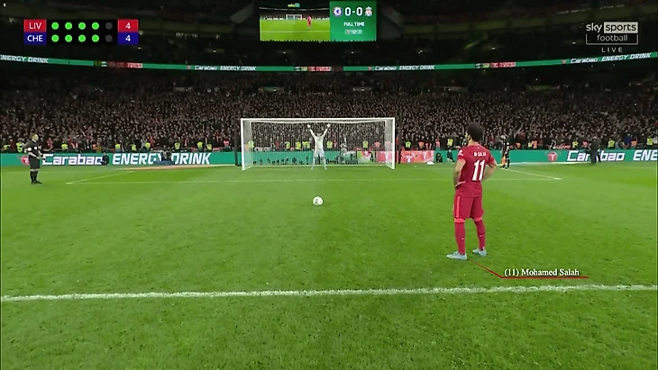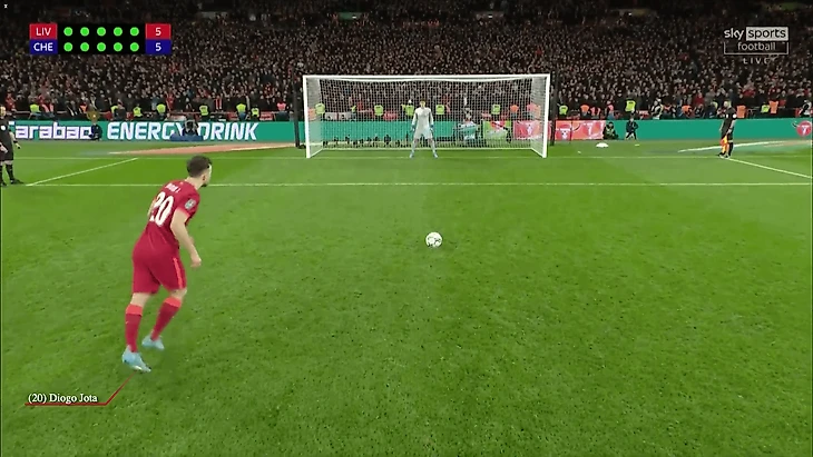 Пятый пенальти выпал на долю Салаха, который должным образом исполнил пять ударов с точки из пяти за «Ливерпуль», оказав давление на следующего пенальтиста «Челси», Жоржиньо.