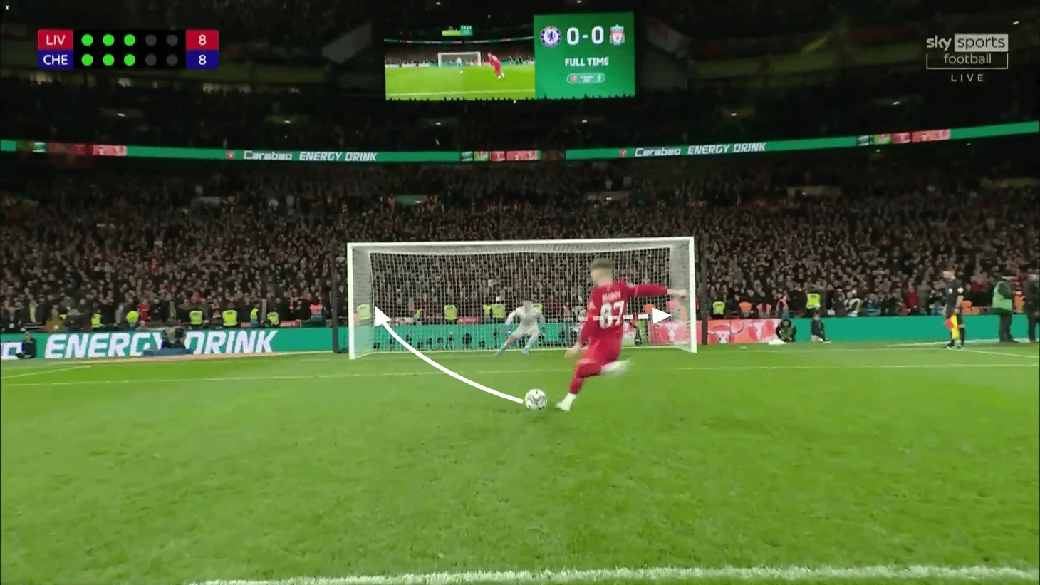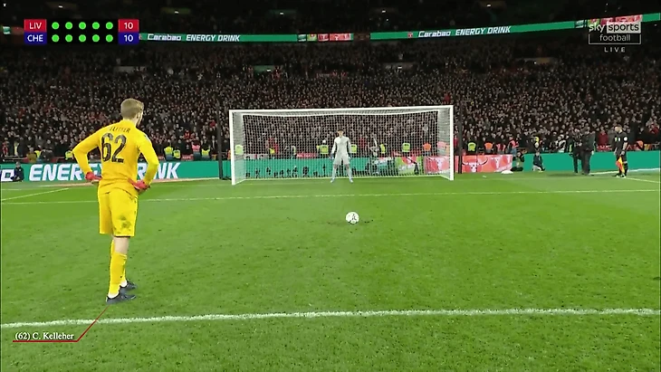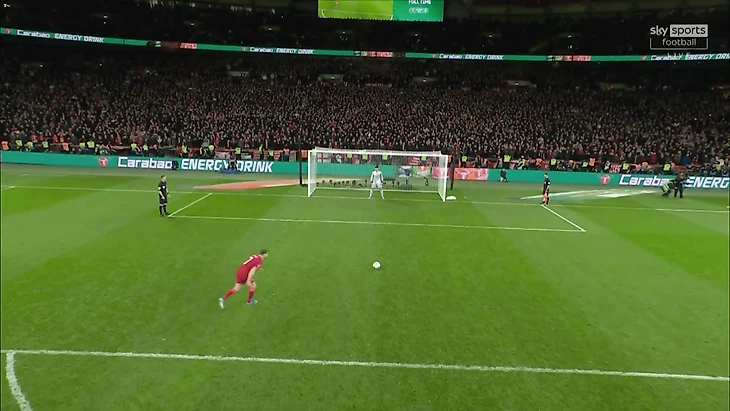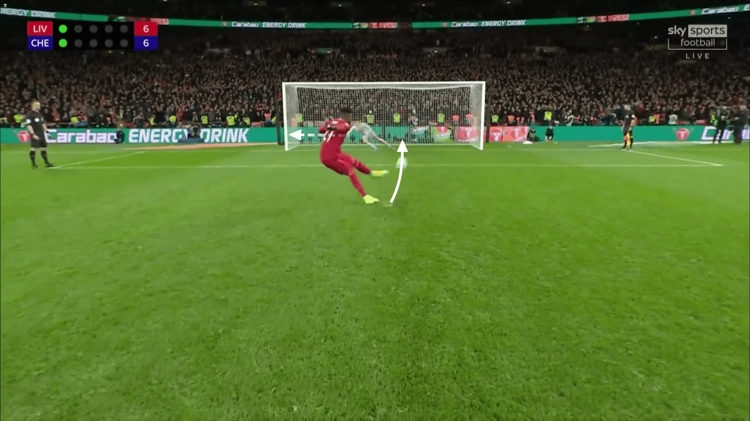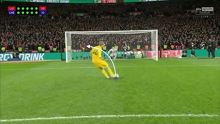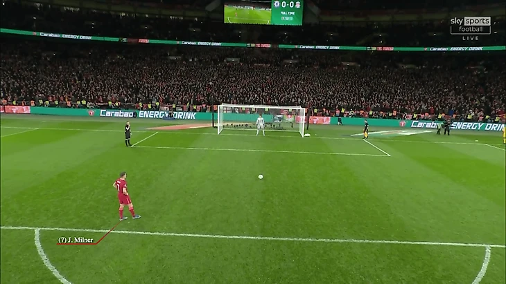 Милнер — опытный пенальтист, и, несмотря на то, что Кепа нырнул влево, в то время как мяч резко закрутился вправо, Милнер знал, что ключевым моментом было попасть в угол с достаточной силой.