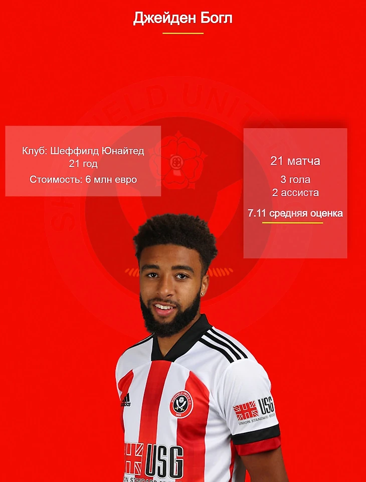 Богл выступает на позиции правого защитника, а его рейтинг за матч составляет 7.11, при этом лучшие игры он выдавал на месте правого опорного полузащитника (7.44).